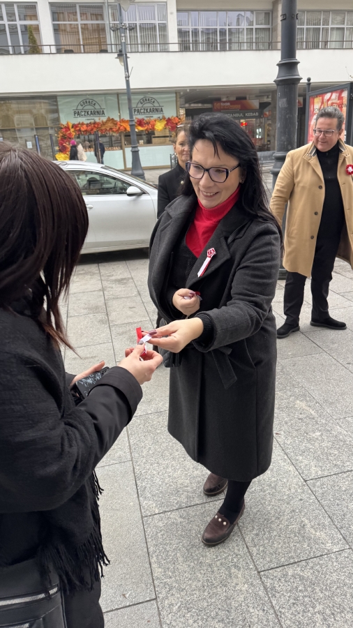 "Szanowni Państwo, jesteśmy dokładnie w przededniu rocznicy odzyskania przez Polskę niepodległości. Bardzo ważne święto, święto wszystkich obywateli, bez względu na to, czy są zwolennikami lewicy, prawicy, święto nas wszystkich. Dlatego dzisiaj z okazji tego święta będziemy rozdawać mieszkańcom Łodzi kotyliony, żeby jutro dumnie ten kotylion przyczepili sobie do kurtki, do marynarki, do swetra i dumnie pokazywali, że Polska jest niepodległym krajem". - mówił Tomasz Trela, Poseł Na Sejm RP.