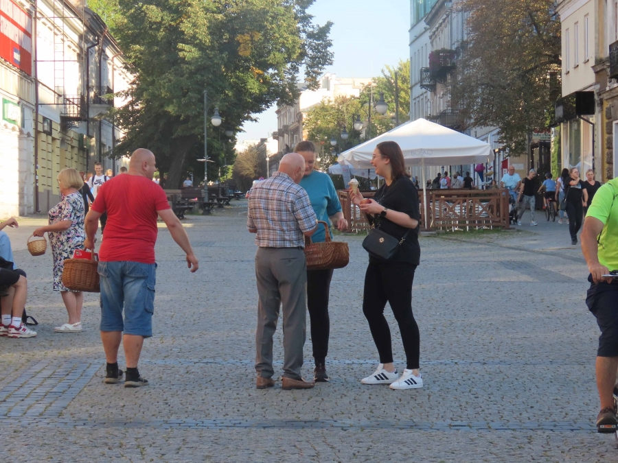 Rozdawaliśmy  jabłka  na  deptaku  przy  ulicy  Żeromskiego  w  Radomiu.  Przechodnie  chętnie  się  nimi  częstowali. Chwalili  ich  smak i  wygląd.