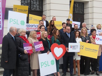 W konferencji prasowej wzięły udział kandydatki i kandydaci w wyborach , w tym liczna grupa z Lewicy .