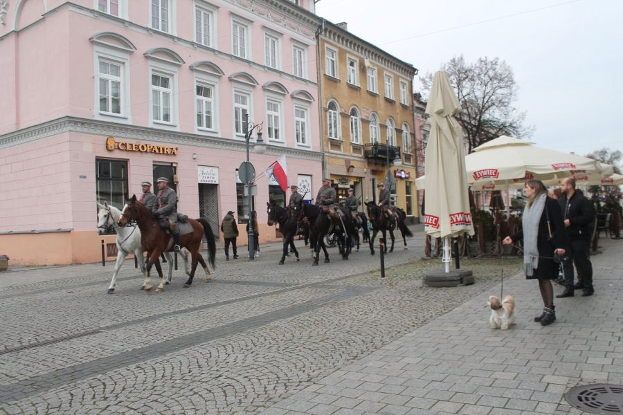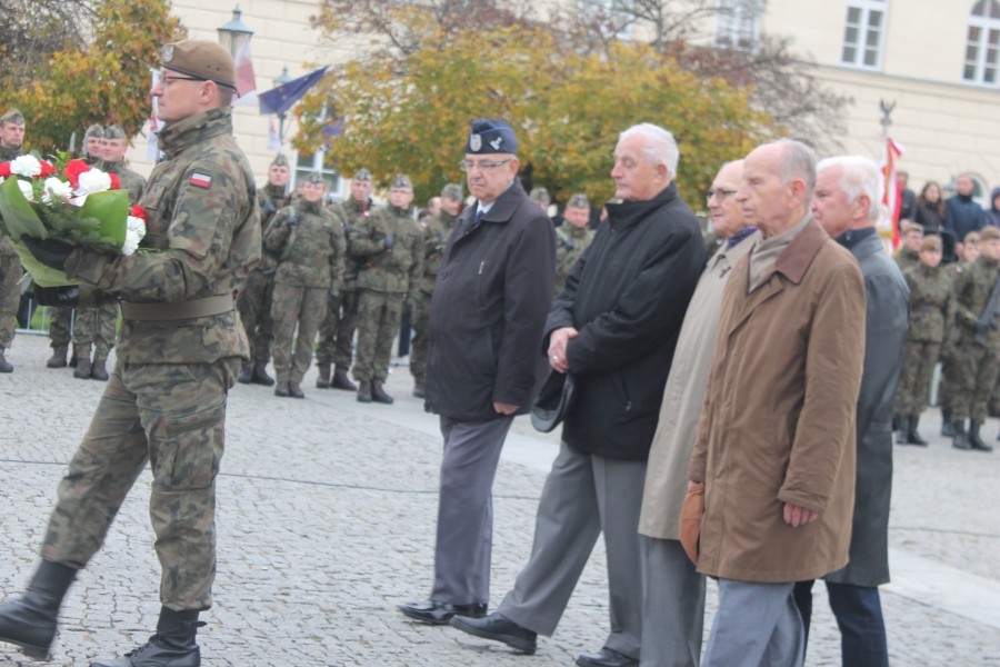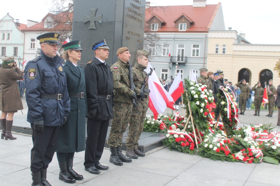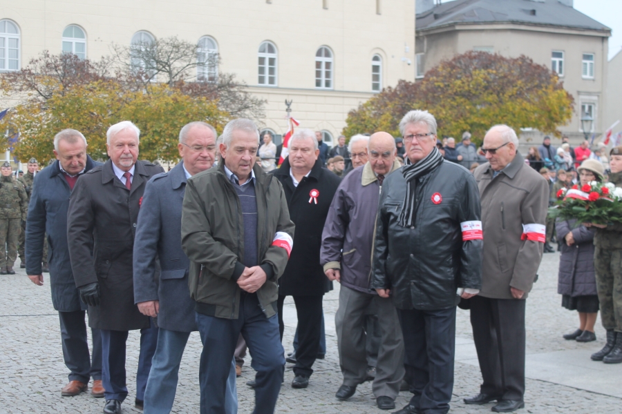 Goście i organizatorzy Święta Niepodległości,  nadający ton rocznicowej uroczystości , kontynuowanej na Rynku przy Pomniku Czynu Legionów Józefa Piłsudskiego,  akcentowali