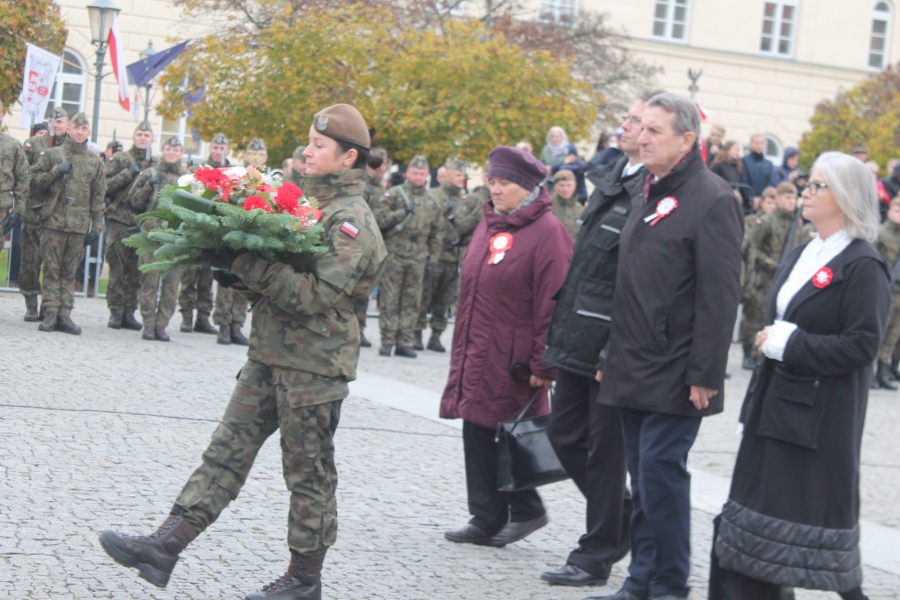 wartości patriotyczne umacniające narodową wspólnotę, tak ważną w sytuacji zagrożenia zewnętrznego . Wiceminister MON Wojciech Skurkiewicz podkreślił, że tegoroczne obchody ŚwiętaNiepodległości w Polsce odbywają się w cieniu regularnej wojny w Ukrainie. Ta wojna jest tragiczna nie tylko dla żołnierzy, ale również dla ludności cywilnej. Wolność trzeba więc pielęgnować w każdej chwili naszego życia, wspominając naszych bohaterów – mówił minister. Dodał, że dzisiaj Polak dla Polaka powinien być przyjacielem, wsparciem, ostoją i orężem w
