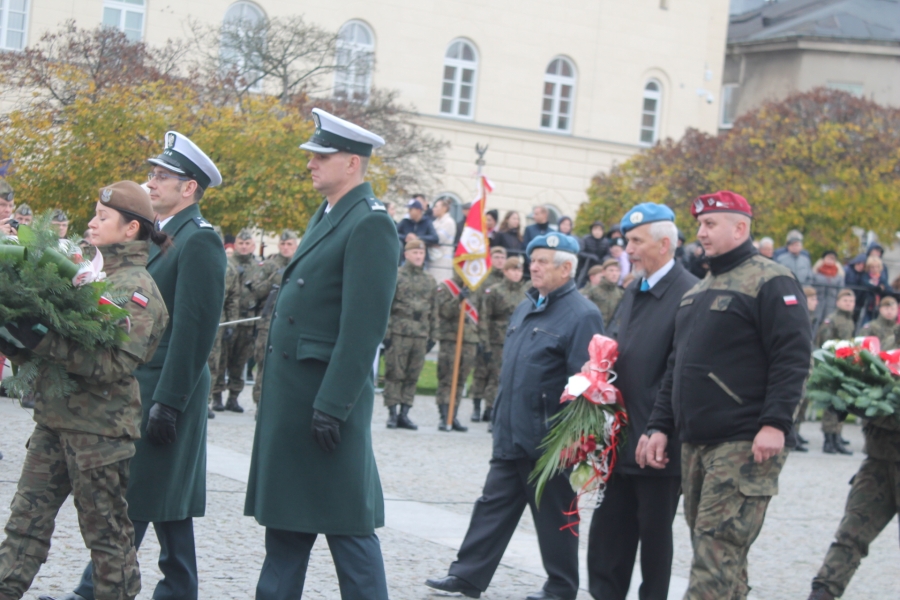 Uroczystości  miały  charakter  wojskowy. Brali  w nich udział  nie tylko  żołnierze służby czynnej lecz także służby mundurowe, z których niektóre np. Straż Prezydencka pełniły wartęDelegacja NL 11.11.2022r. b honorową wraz żołnierzami , dziesiątki pocztów sztandarowych, reagujących przepisowo i zdyscyplinowanie na hymn państwowy, czy wymagania apelu pamięci. Ceremoniał składania wieńców i kwiatów pod Pomnikiem Czynu Legionów jest doskonałym przeglądem zaangażowania przedstawicieli poszczególnych służb mundurowych, organizacji społecznych, zakładów pracy, instytucji i szkół. Ilość reprezentantów organizacji, instytucji czy środowiska, zwiększa się z  każdym rokiem. Zaobserwowaliśmy to m.in. na przykładzie: leśników,